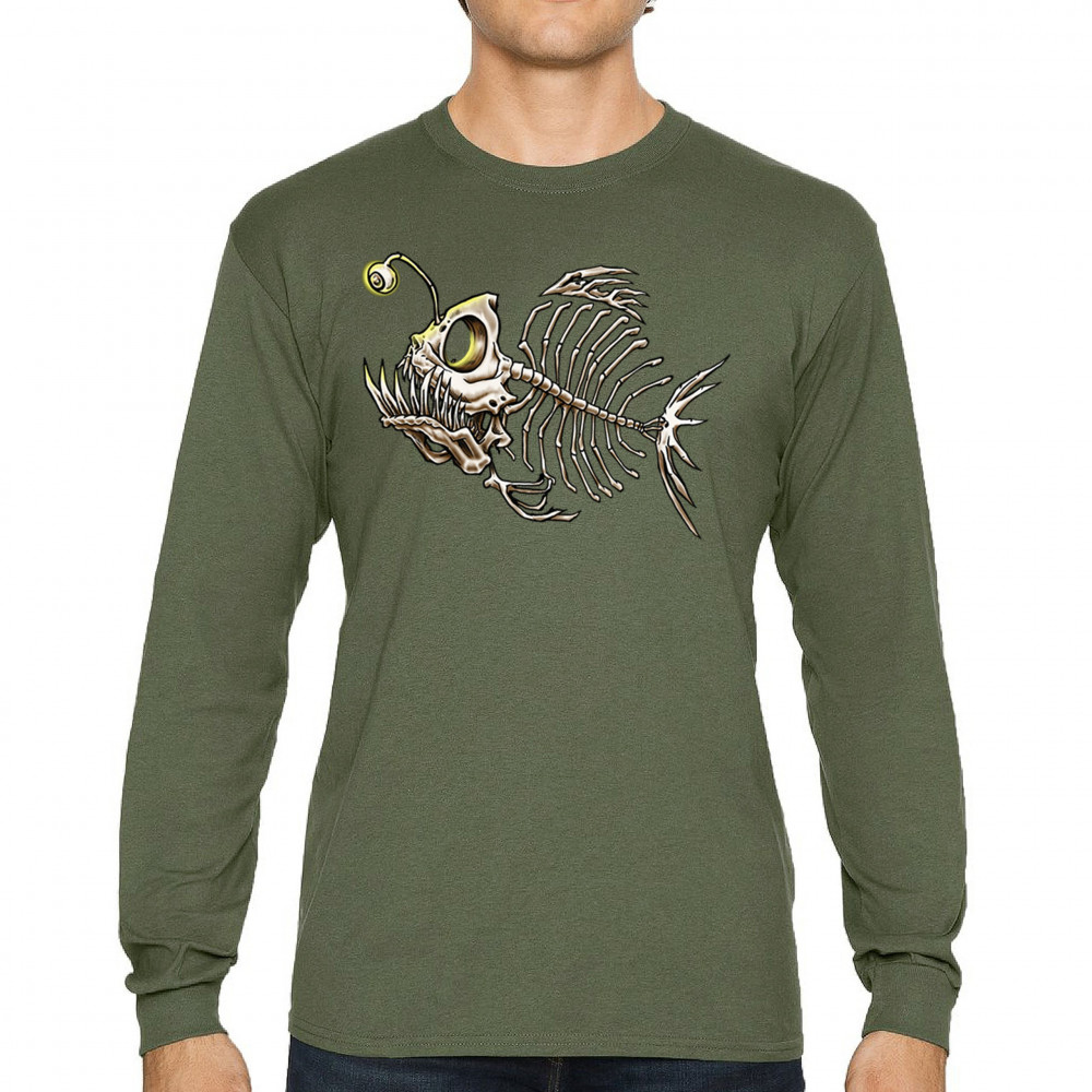 Creepy angler fish skeleton with glowing eye and horror bones. Perfect for sea lovers, divers, Halloween, and marine biology fans.