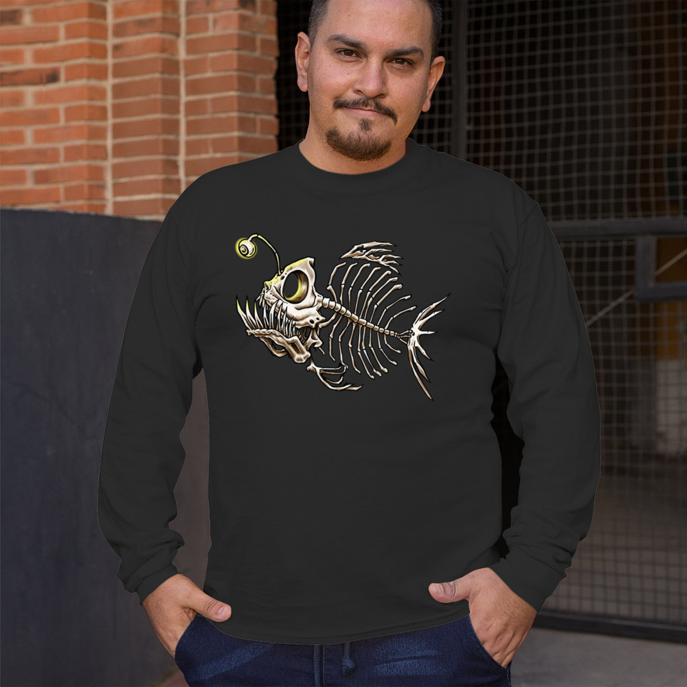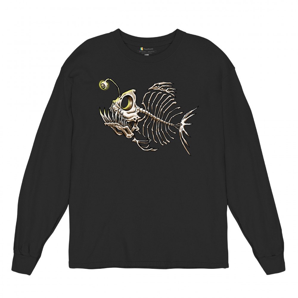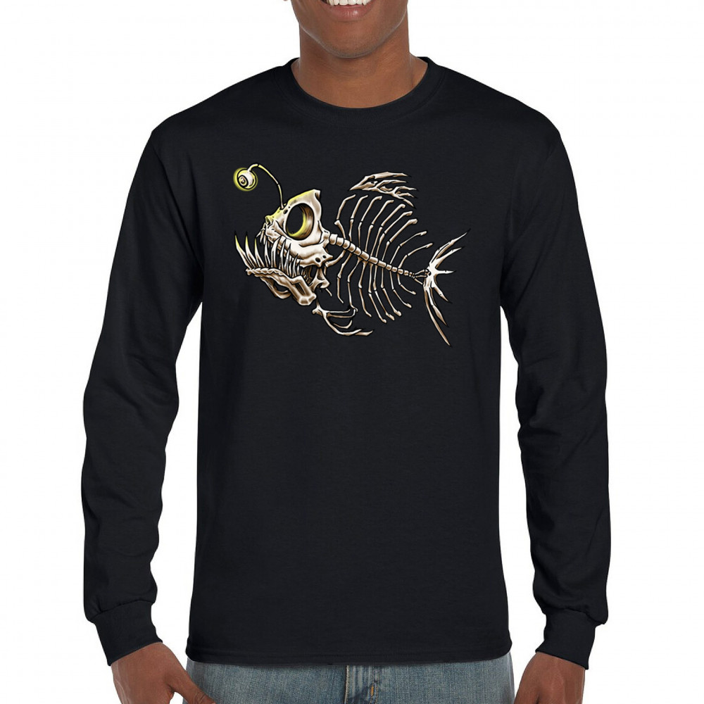 DEEP SEA ANGLER FISH SKELETON long sleeve t-shirt fishermen fishing lover gift black