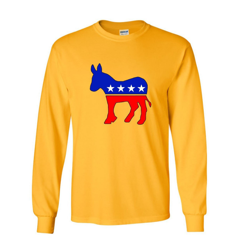 DEMOCRATIC PARTY DONKEY logo long sleeve t-shirt political liberal left wing tee yellow