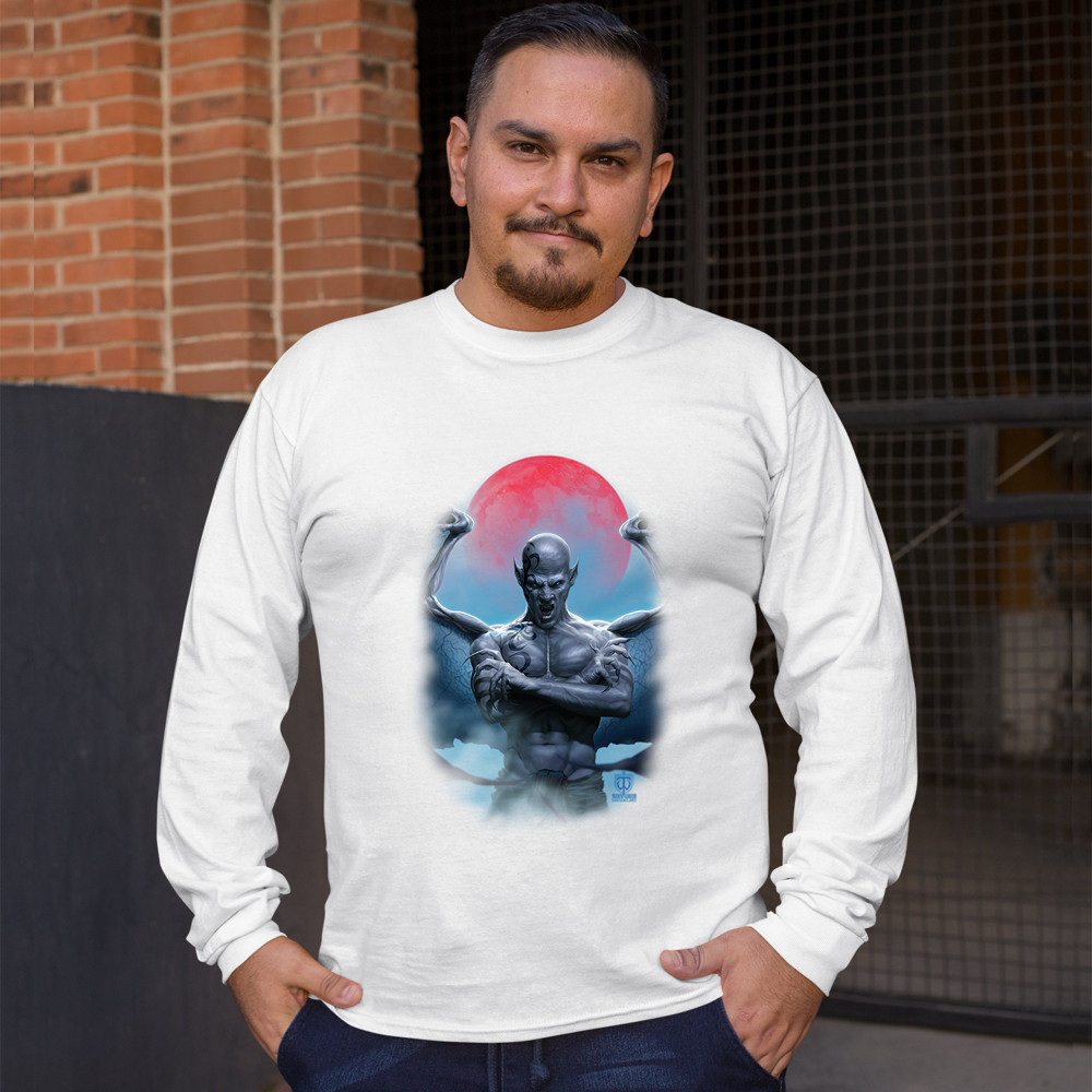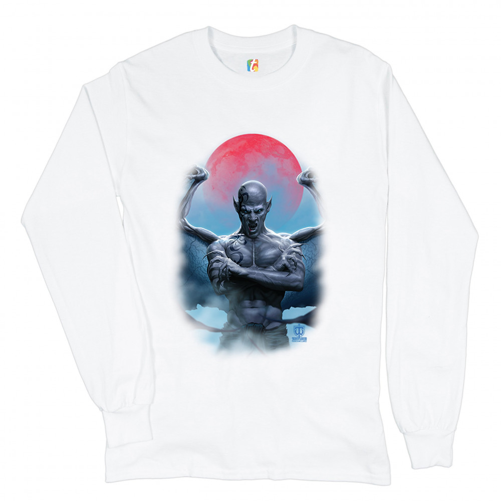 DEMON GARGOYLE long sleeve t-shirt blood moon scary halloween monster white