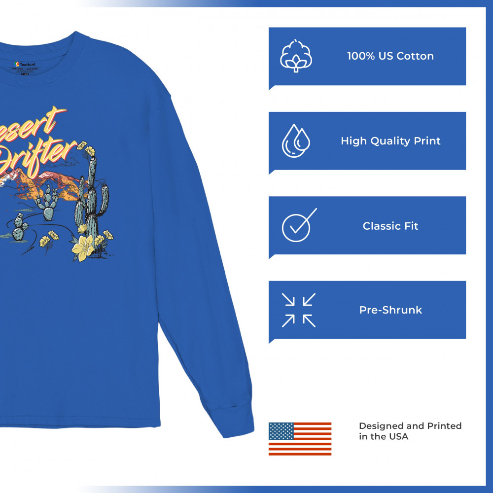 Let 'Desert Drifter' take you on a journey through the heart of the desert, from the blooming yuccas to the majestic mesas that kiss the horizon. This design is an ode to the spirit of the Southwest, a canvas that paints the serene solitude of desert life. It's an invitation to wander, to explore, and to embrace the boundless freedom that the desert represents. Adorn your space with the allure of the arid lands and the call of adventure.