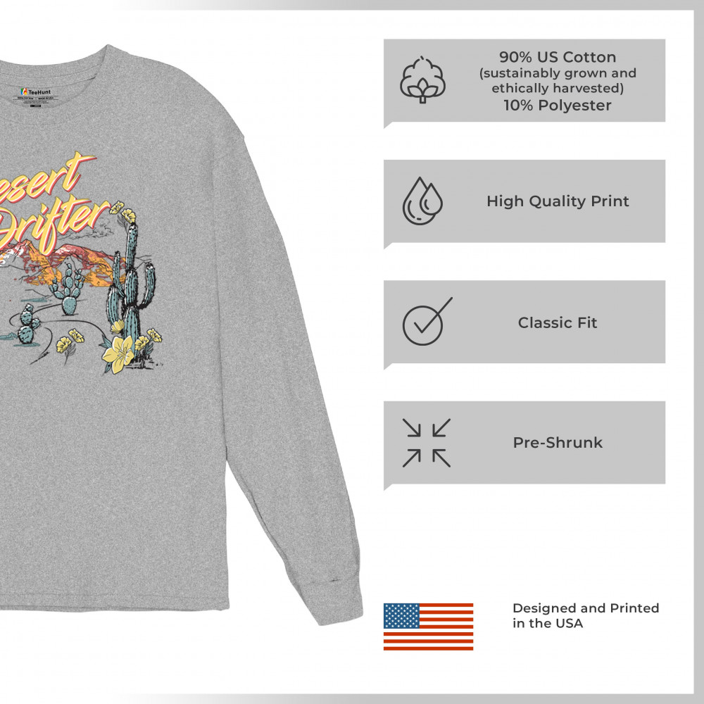 Let 'Desert Drifter' take you on a journey through the heart of the desert, from the blooming yuccas to the majestic mesas that kiss the horizon. This design is an ode to the spirit of the Southwest, a canvas that paints the serene solitude of desert life. It's an invitation to wander, to explore, and to embrace the boundless freedom that the desert represents. Adorn your space with the allure of the arid lands and the call of adventure.