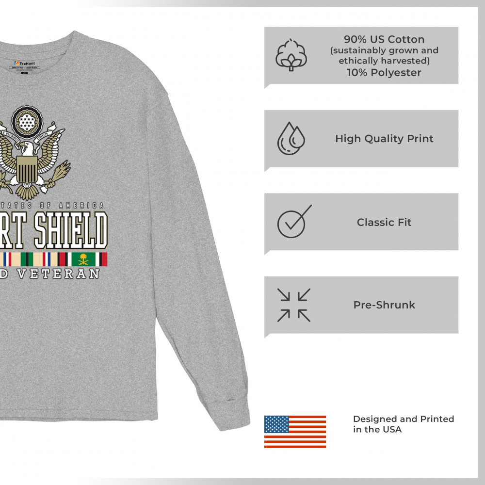 Wear your service with honor with our Desert Shield veteran design, a tribute to the valorous U.S. Army soldiers who stand for freedom, duty, and resilience.
