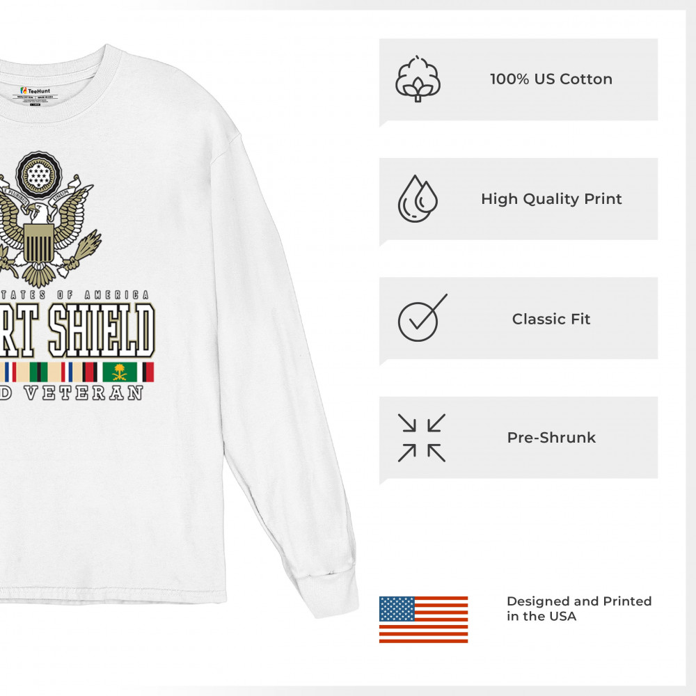 Wear your service with honor with our Desert Shield veteran design, a tribute to the valorous U.S. Army soldiers who stand for freedom, duty, and resilience.