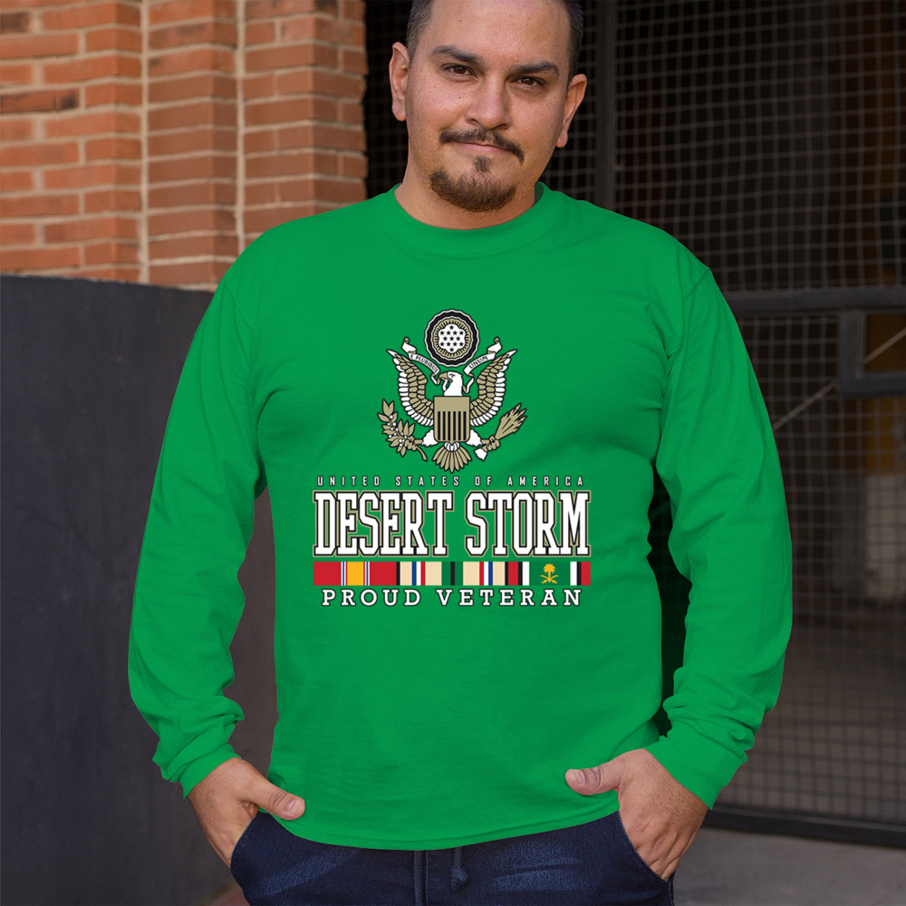 Commemorate Desert Storm with our proud veteran design, celebrating the enduring spirit and sacrifice of U.S. Army warriors and their dedication to duty.