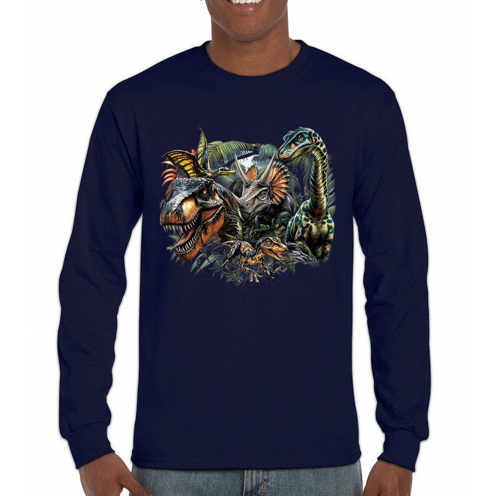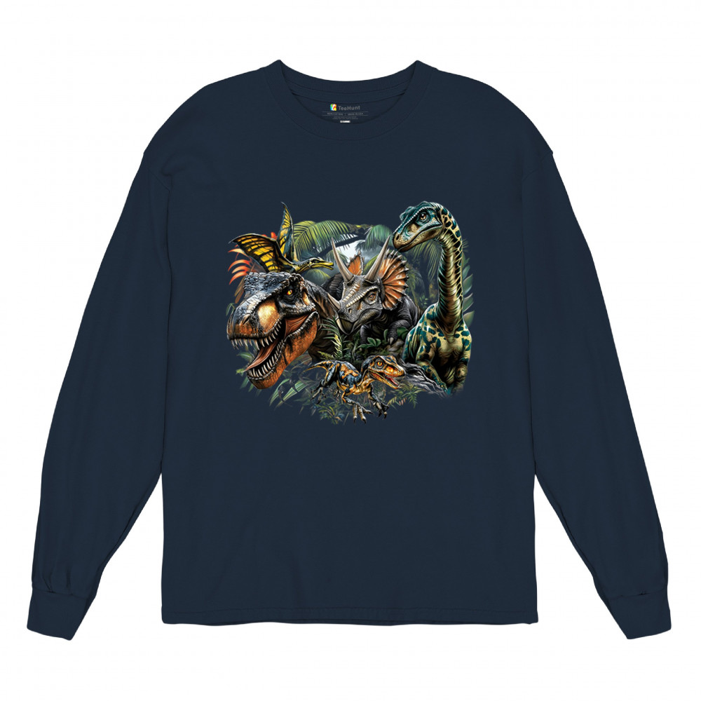 Get prehistoric with this electrifying design featuring a full dino squad in vibrant jungle detail. Includes t rex, triceratops, raptor, brachiosaurus, and pteranodon, all surrounded by tropical foliage. A perfect pick for dinosaur fans, fossil hunters, Jurassic birthday parties, or anyone who loves bold, wild, nature-themed art.