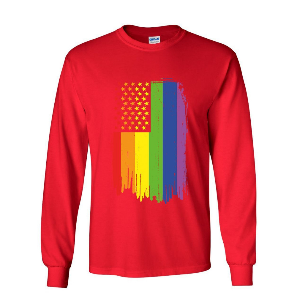 DISTRESSED GAY PRIDE RAINBOW FLAG long sleeve t-shirtlgbtq love wins red
