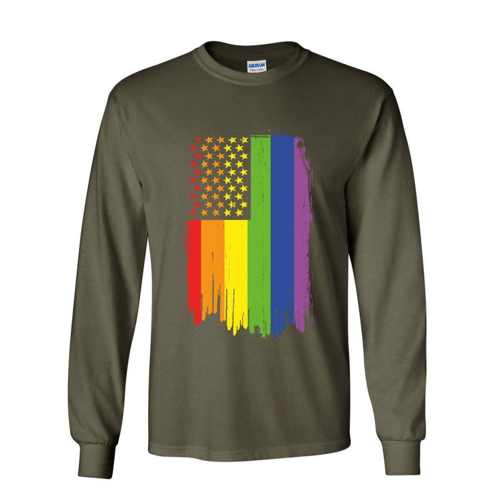 DISTRESSED GAY PRIDE RAINBOW FLAG long sleeve t-shirtlgbtq love wins military green