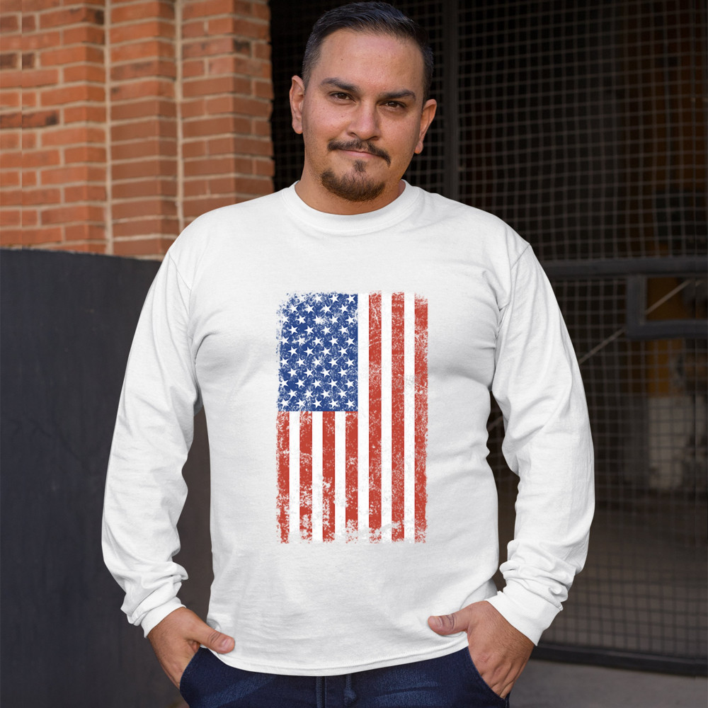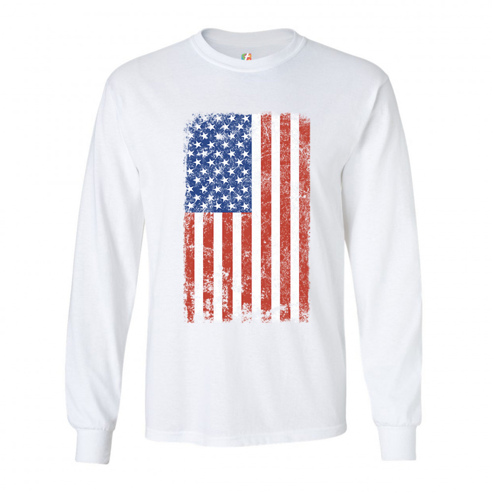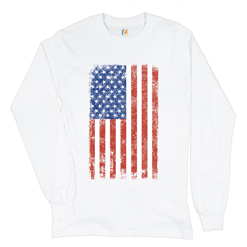 DISTRESSED GRUNGE AMERICAN FLAG long sleeve t-shirt vintage 4th of july usa white