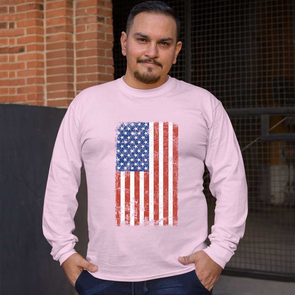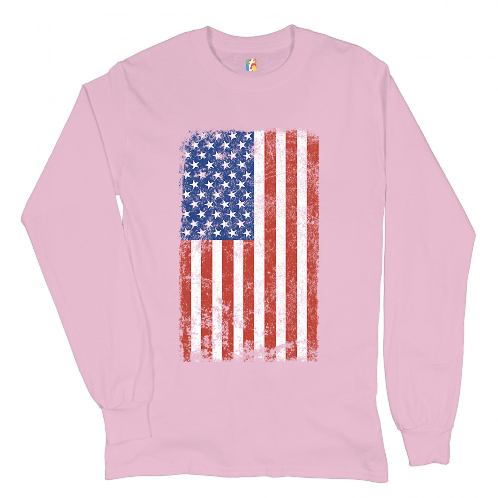 DISTRESSED GRUNGE AMERICAN FLAG long sleeve t-shirt vintage 4th of july usa pink