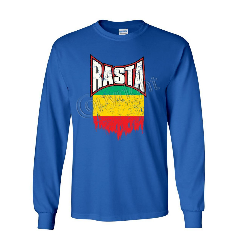 DISTRESSED RASTA FLAG long sleeve t-shirt smoking 420 reggae marijuana weed tee royal blue