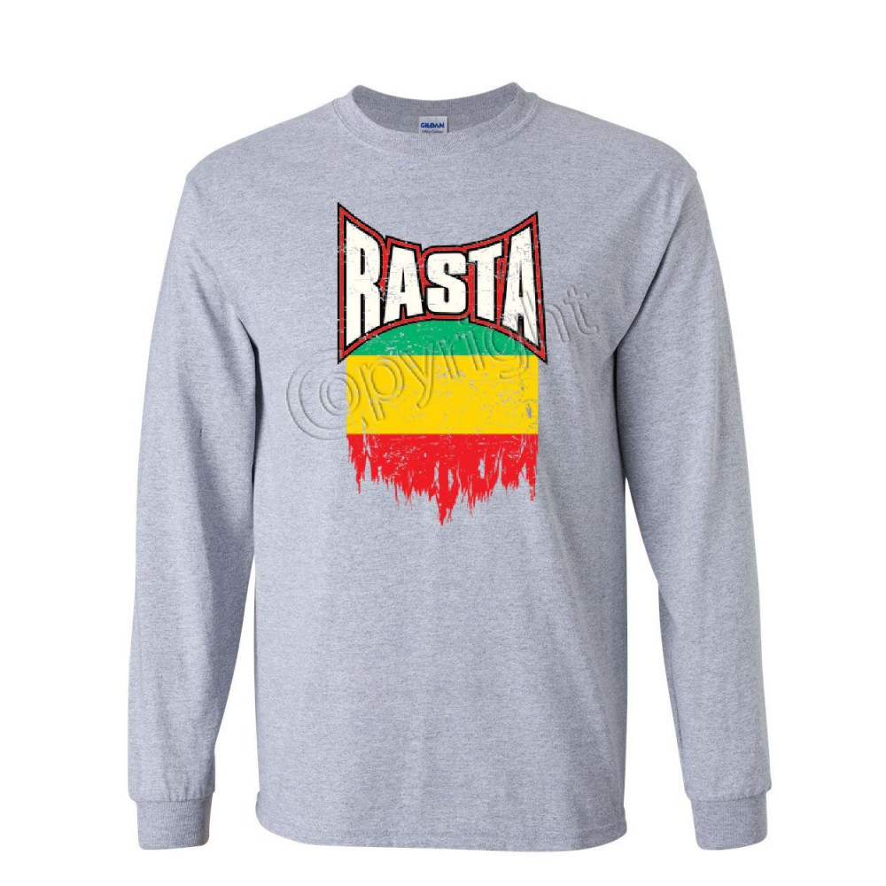 DISTRESSED RASTA FLAG long sleeve t-shirt smoking 420 reggae marijuana weed tee gray