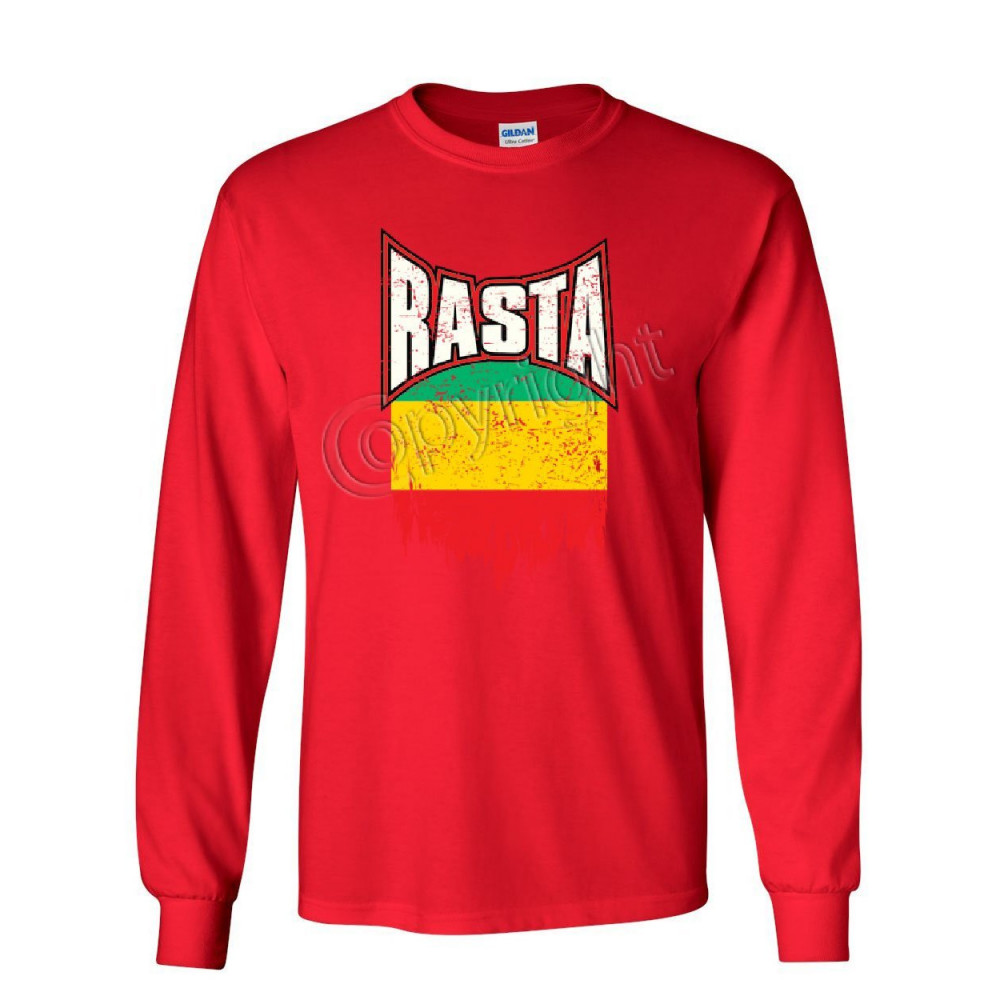 DISTRESSED RASTA FLAG long sleeve t-shirt smoking 420 reggae marijuana weed tee red