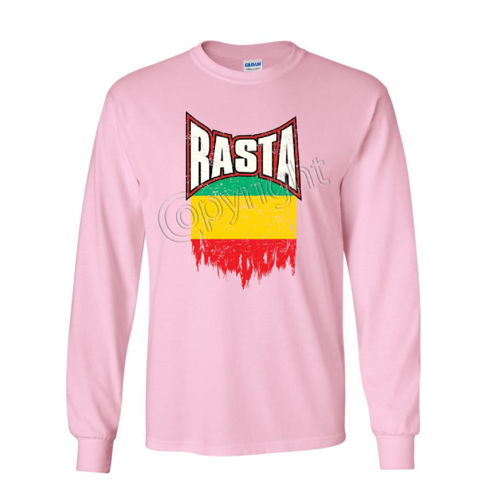 DISTRESSED RASTA FLAG long sleeve t-shirt smoking 420 reggae marijuana weed tee light pink