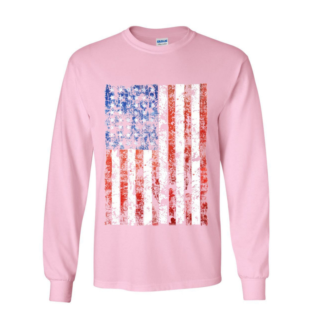 DISTRESSED US FLAG long sleeve t-shirt american flag light pink