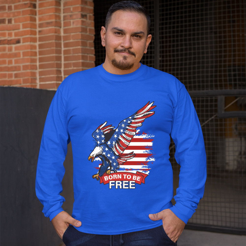 DIVING BALD EAGLE long sleeve t-shirt born to be free american flag 4th of july royal blue