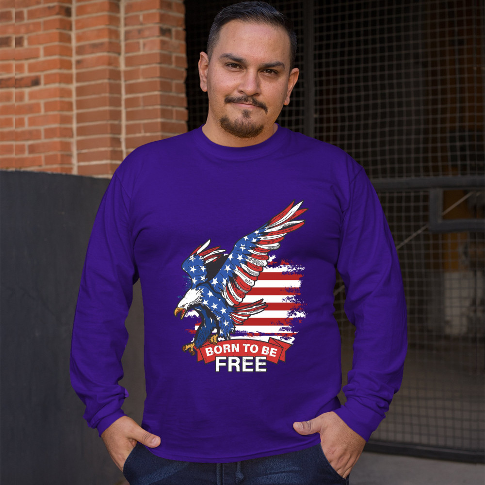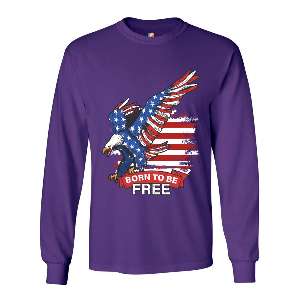 DIVING BALD EAGLE long sleeve t-shirt born to be free american flag 4th of july purple