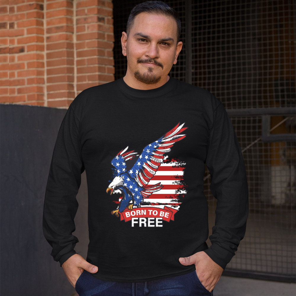DIVING BALD EAGLE long sleeve t-shirt born to be free american flag 4th of july black