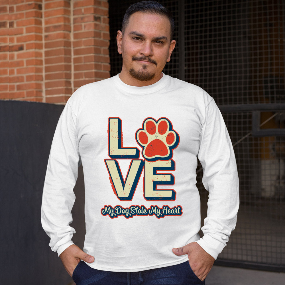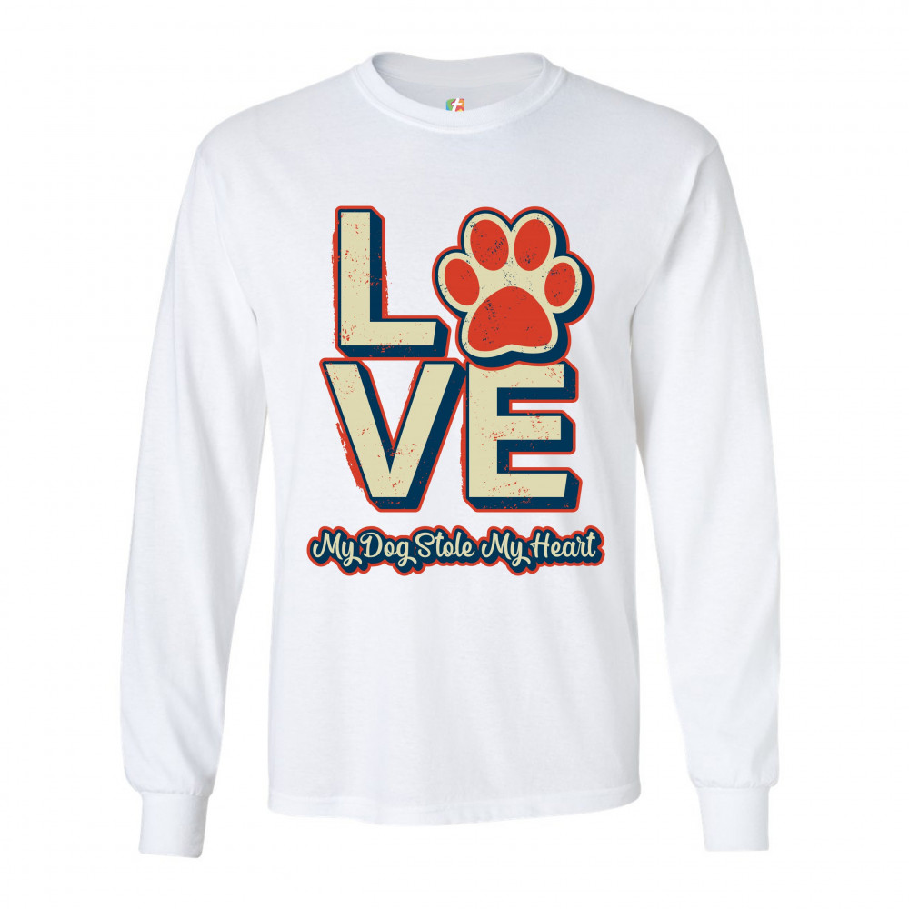 DOG PAW LOVE long sleeve t-shirt my dog stole my heart pet owner animal lover white