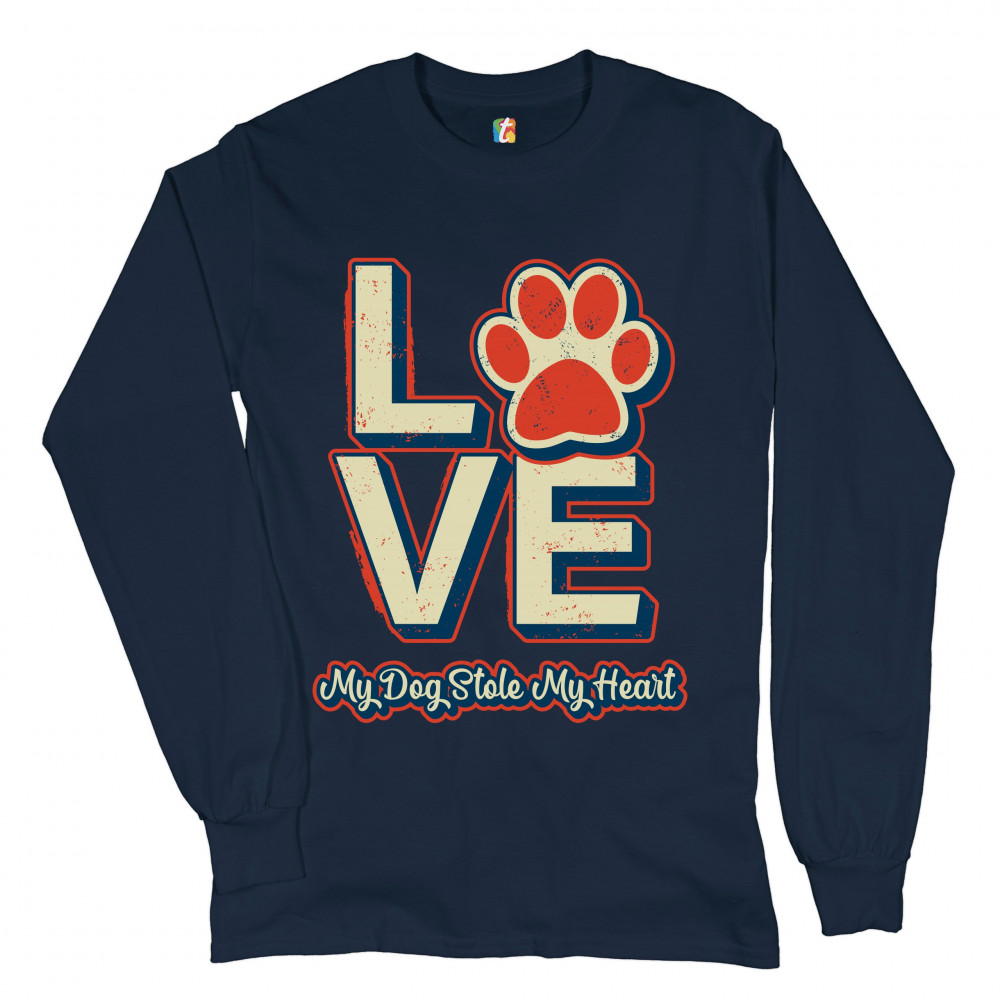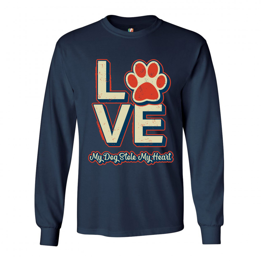 DOG PAW LOVE long sleeve t-shirt my dog stole my heart pet owner animal lover navy blue