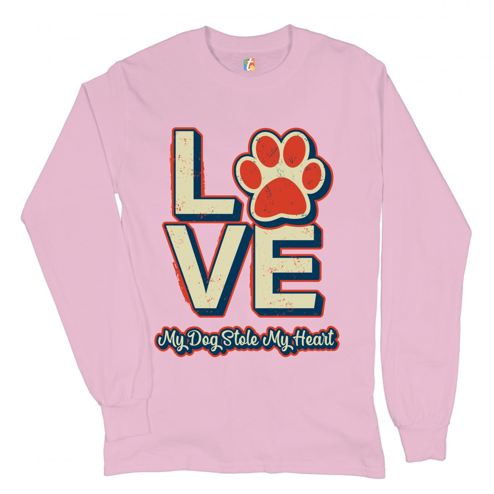 DOG PAW LOVE long sleeve t-shirt my dog stole my heart pet owner animal lover pink