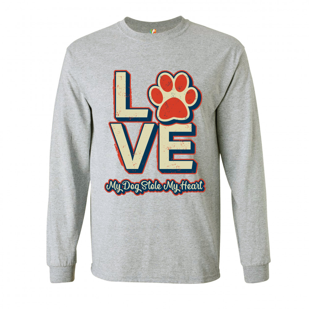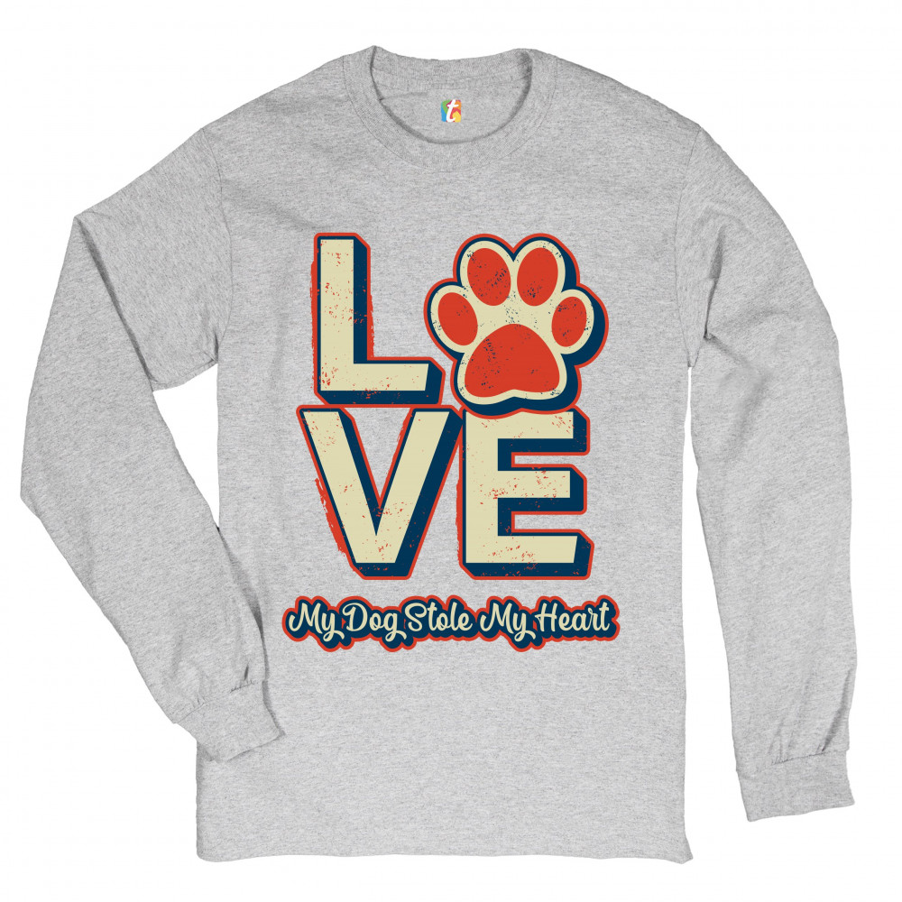 DOG PAW LOVE long sleeve t-shirt my dog stole my heart pet owner animal lover gray