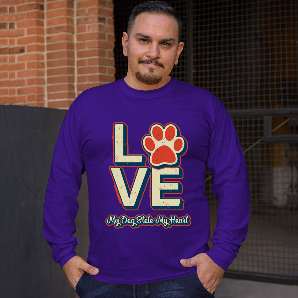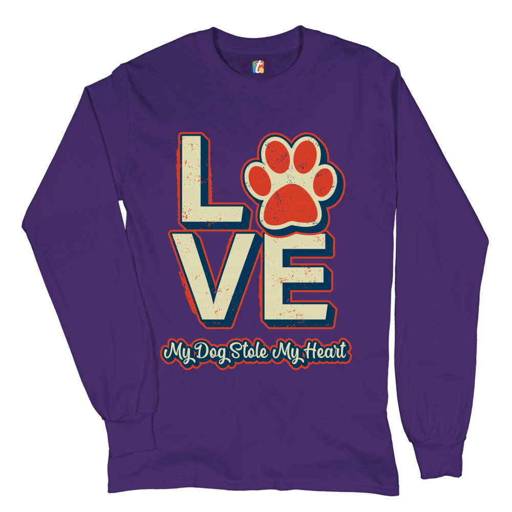DOG PAW LOVE long sleeve t-shirt my dog stole my heart pet owner animal lover purple