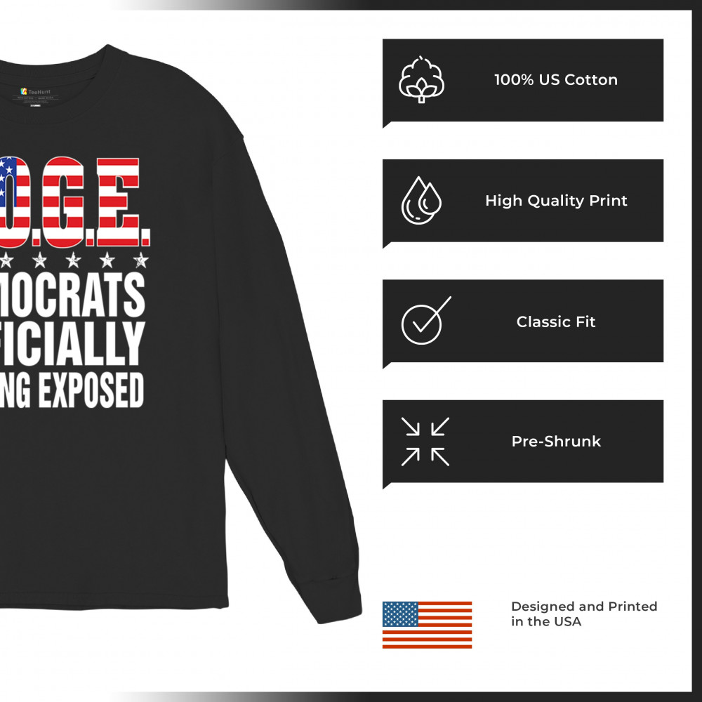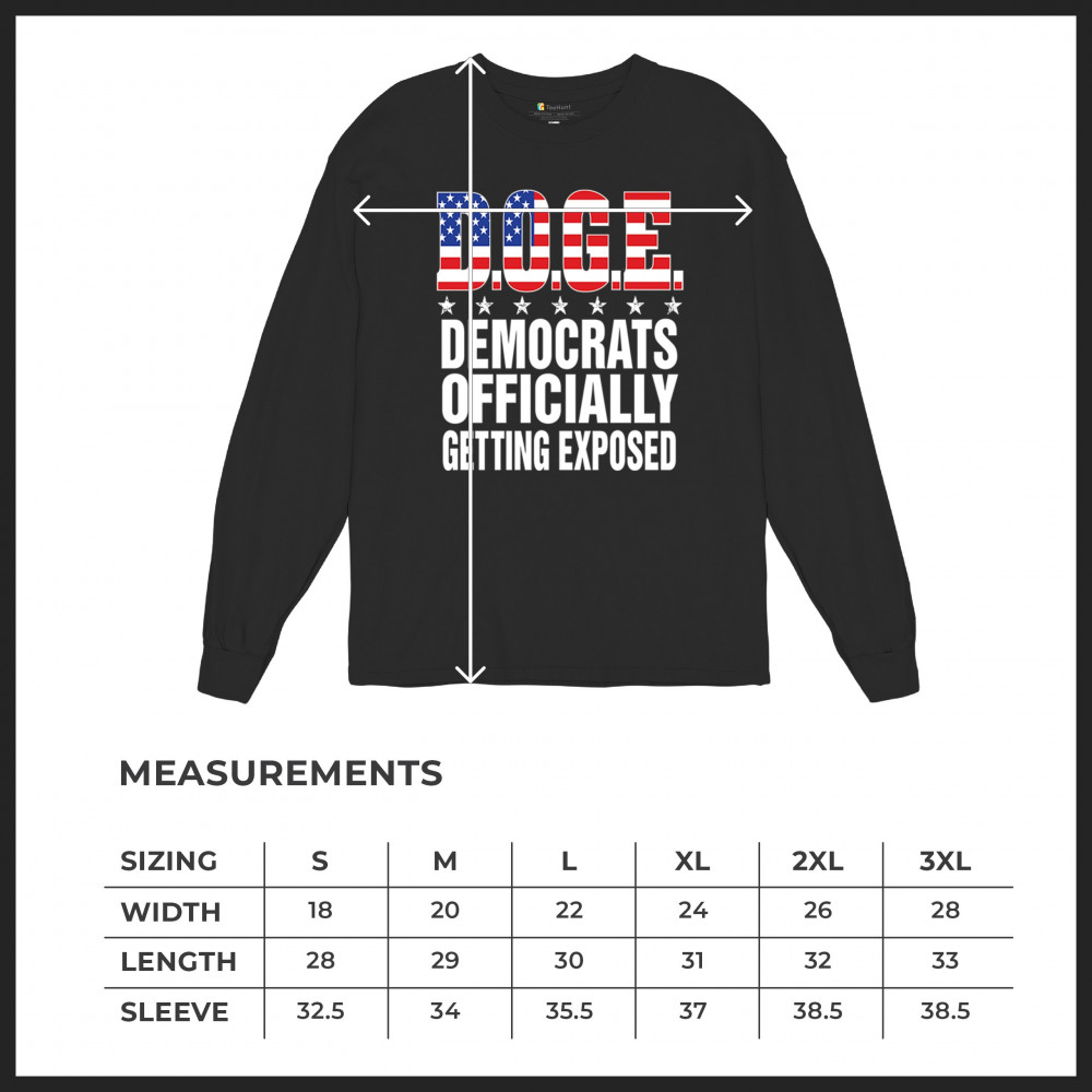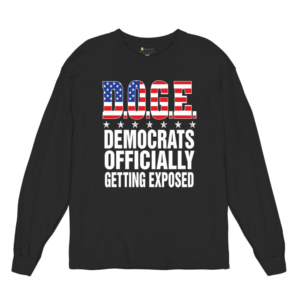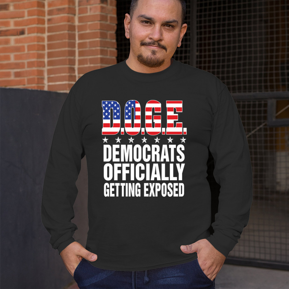 The D.O.G.E. Democrats Officially Getting Exposed design features bold text packed with patriotic flair and political edge. Stars-and-stripes fill the acronym while the clean layout delivers a direct anti-liberal message. Ideal for conservatives, libertarians, and free-speech defenders at rallies, campaign events, or daily wear.