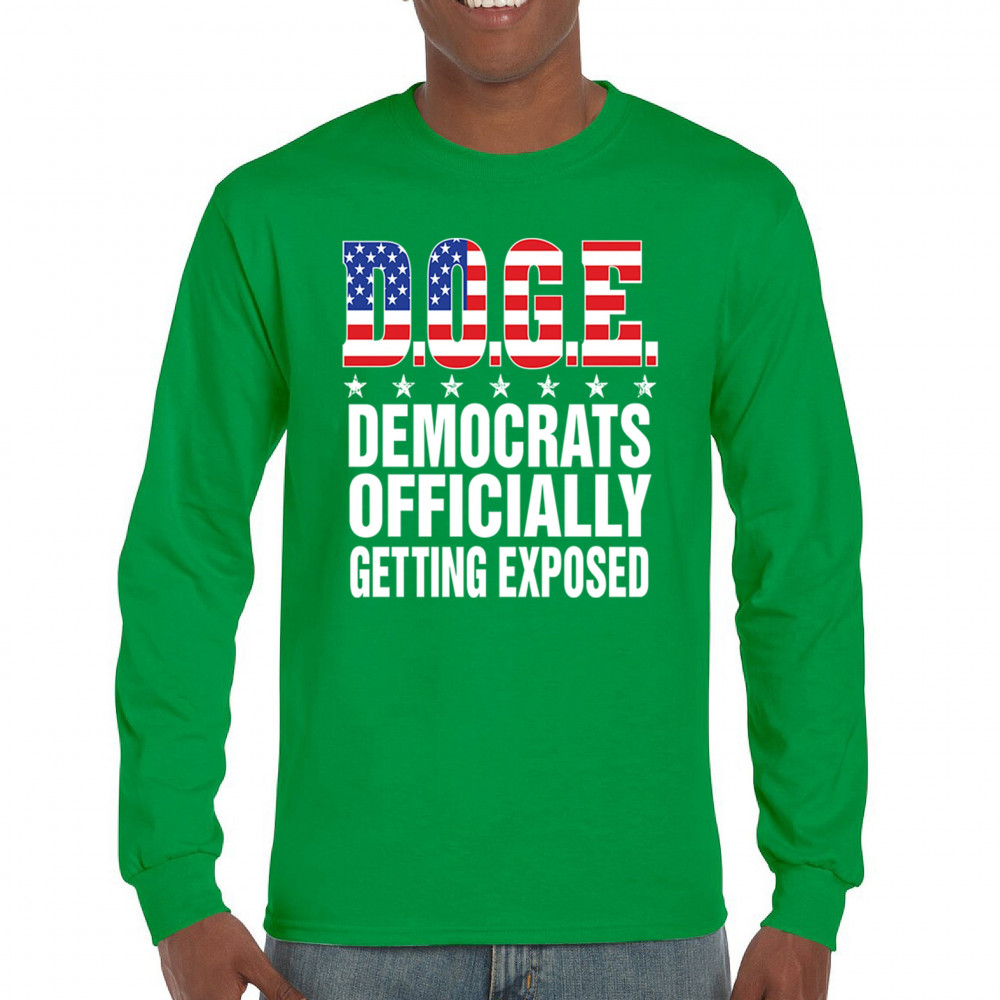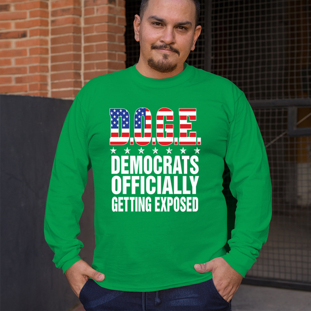 The D.O.G.E. Democrats Officially Getting Exposed design features bold text packed with patriotic flair and political edge. Stars-and-stripes fill the acronym while the clean layout delivers a direct anti-liberal message. Ideal for conservatives, libertarians, and free-speech defenders at rallies, campaign events, or daily wear.