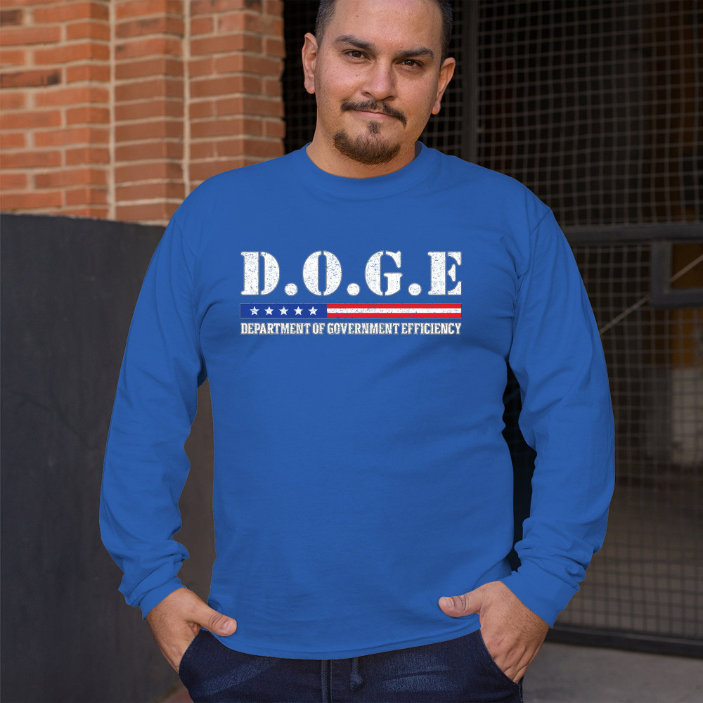 The D.O.G.E. – Department of Government Efficiency design brings gritty patriotism and satire together in a bold statement. With distressed typography, red, white, and blue stars and stripes, and a message that resonates with liberty lovers, it's ideal for conservatives, libertarians, and reform advocates at political events, rallies, or everyday wear.