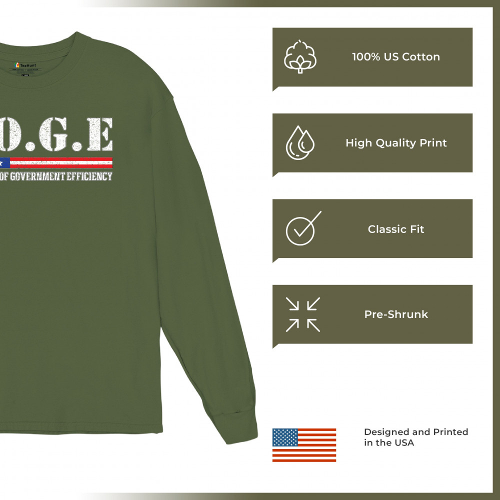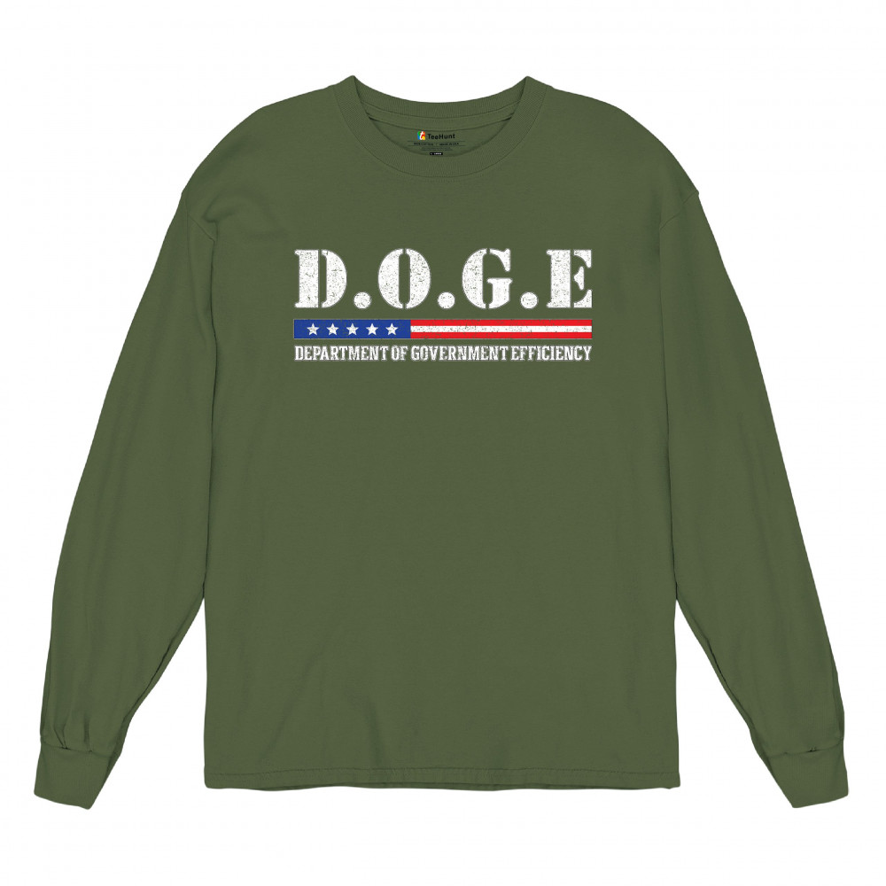 The D.O.G.E. – Department of Government Efficiency design brings gritty patriotism and satire together in a bold statement. With distressed typography, red, white, and blue stars and stripes, and a message that resonates with liberty lovers, it's ideal for conservatives, libertarians, and reform advocates at political events, rallies, or everyday wear.