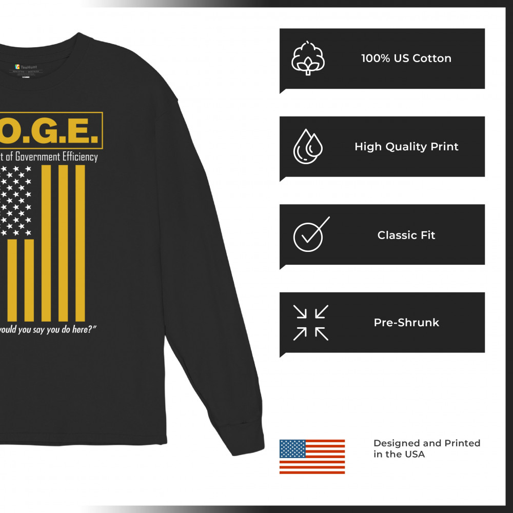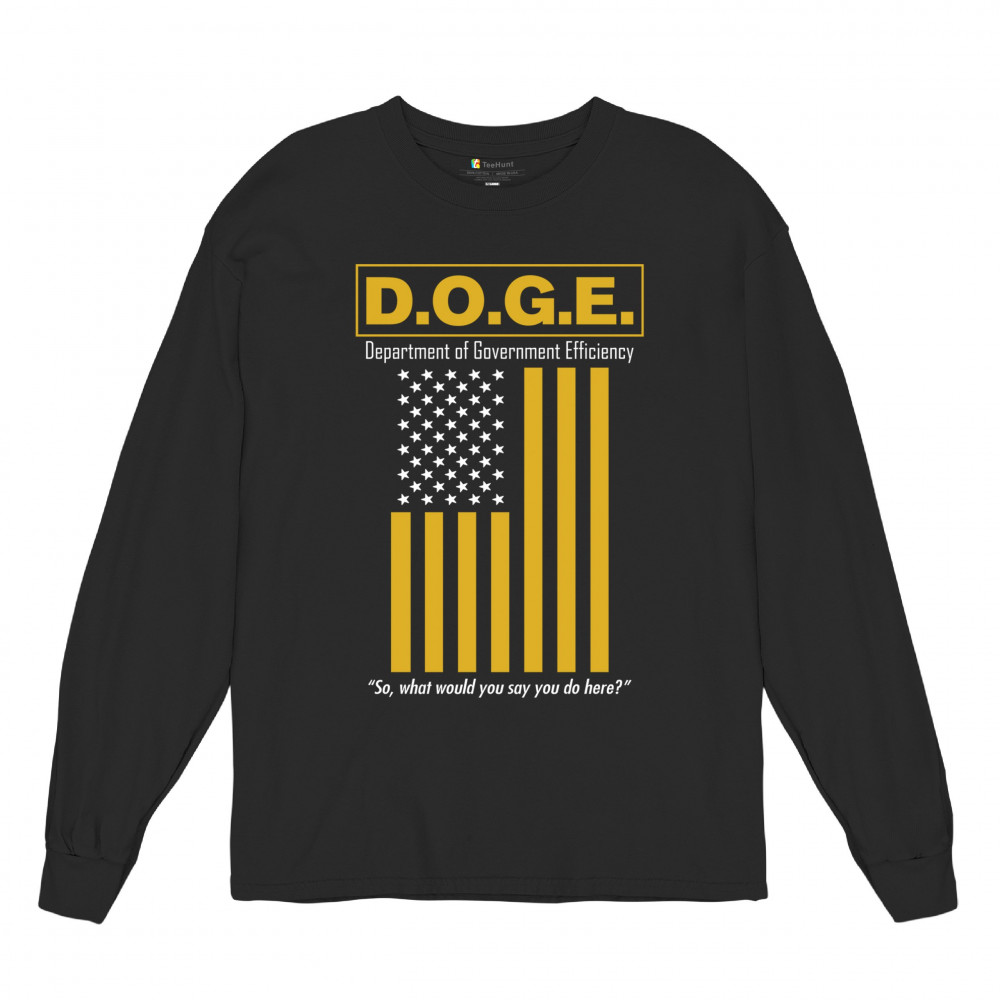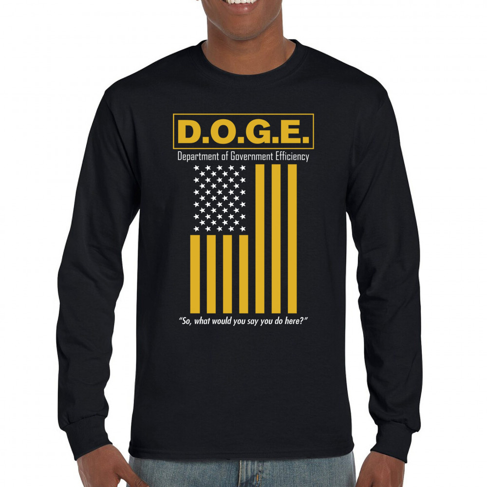 DOGE USA FLAG METALLIC long sleeve t-shirt department of government efficiency black