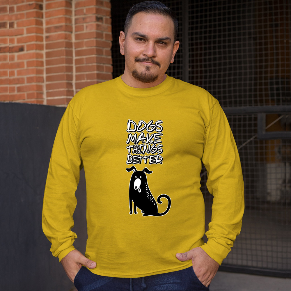 DOGS MAKE THINGS BETTER long sleeve t-shirt animal pet owner i love my dog yellow