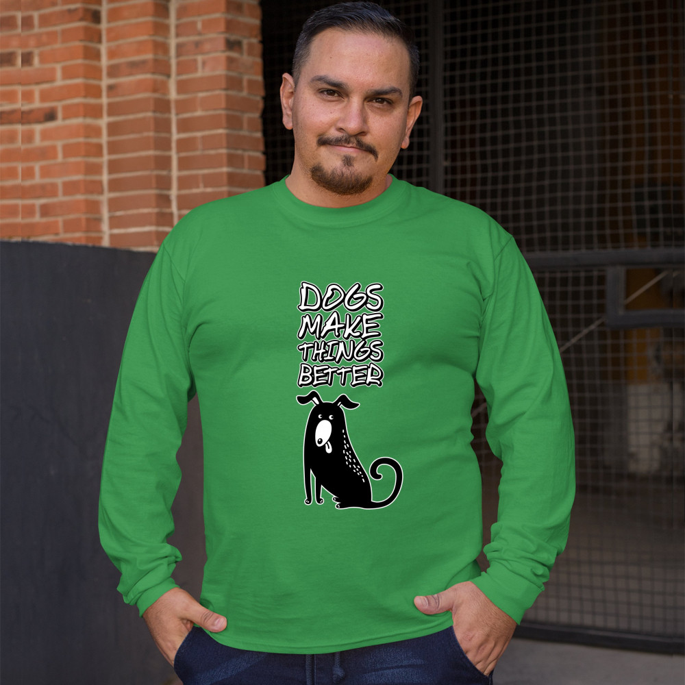 DOGS MAKE THINGS BETTER long sleeve t-shirt animal pet owner i love my dog green
