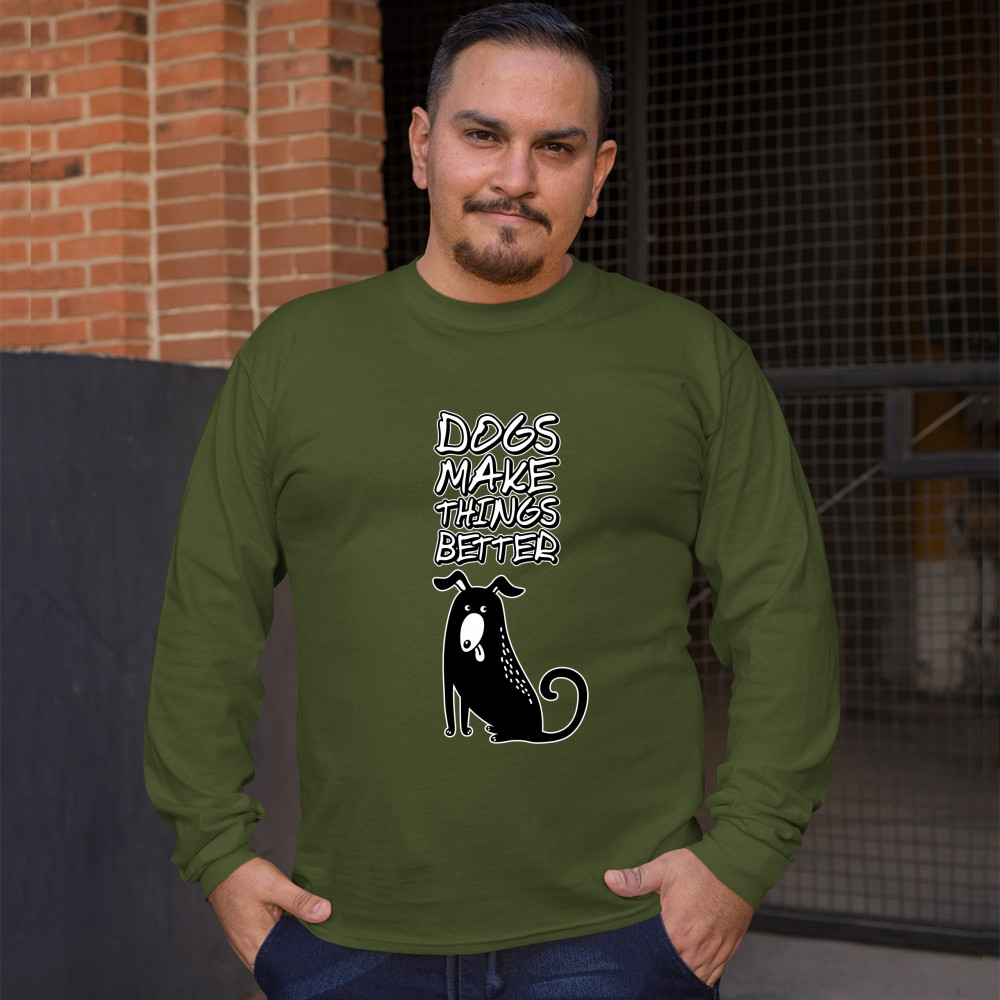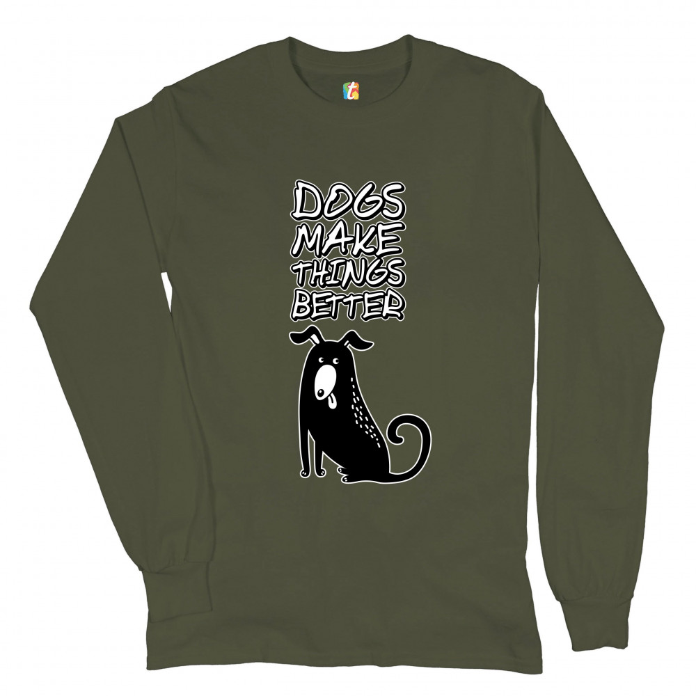 DOGS MAKE THINGS BETTER long sleeve t-shirt animal pet owner i love my dog military green