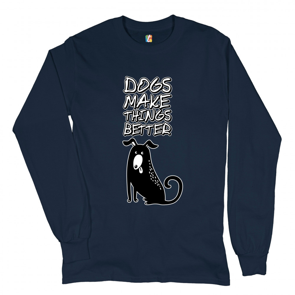 DOGS MAKE THINGS BETTER long sleeve t-shirt animal pet owner i love my dog navy blue