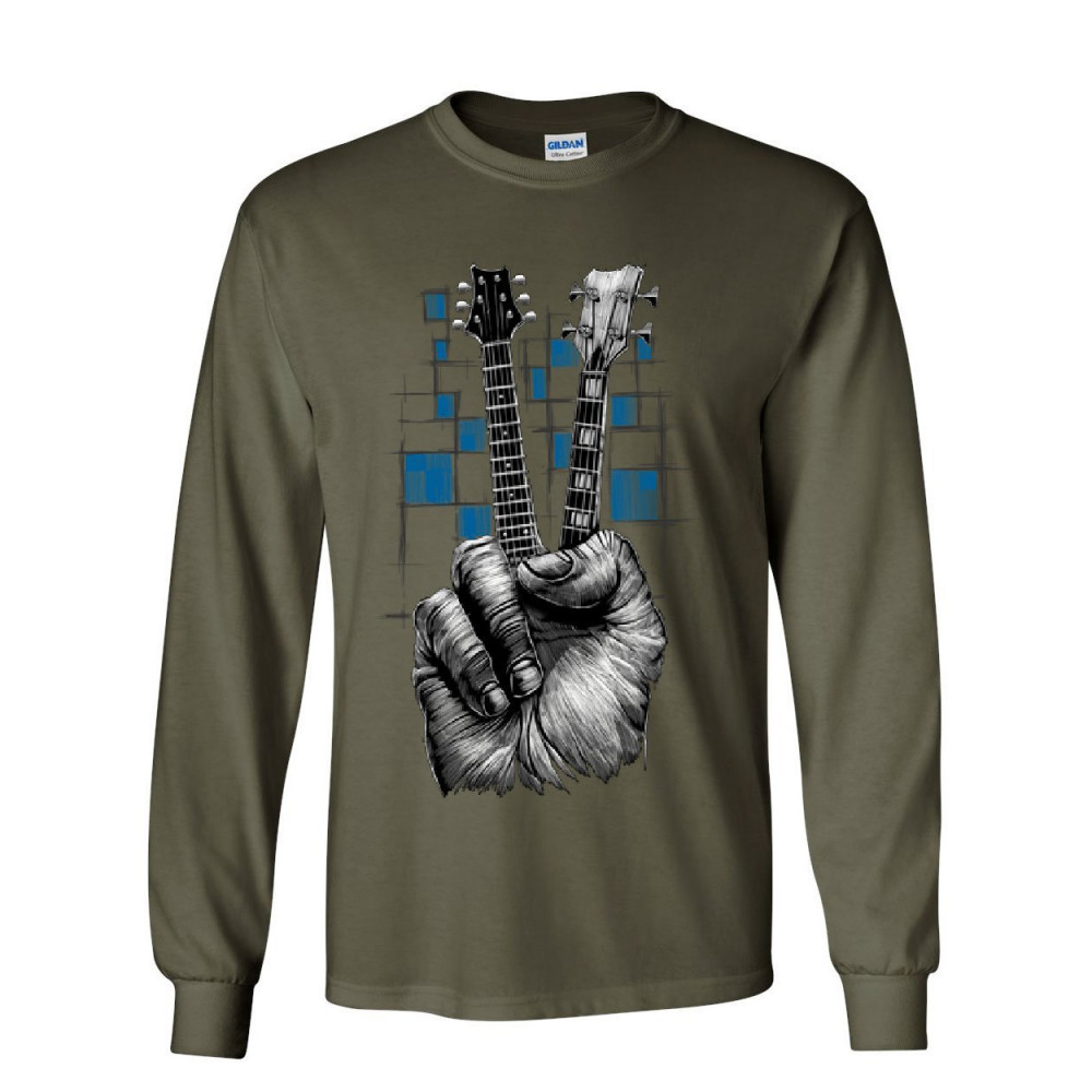 DON'T FRET GUITAR long sleeve t-shirt rock & roll musician peace sign music tee military green