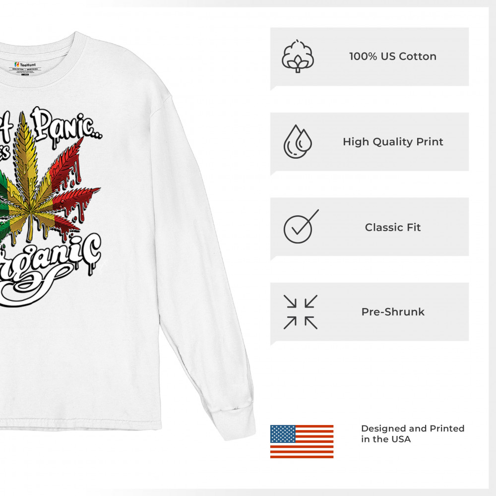 Stay cool and collected with our "Don't Panic...It's Organic" tee. Perfect for those who love life au naturel. It's more than a shirt—it's a lifestyle!
