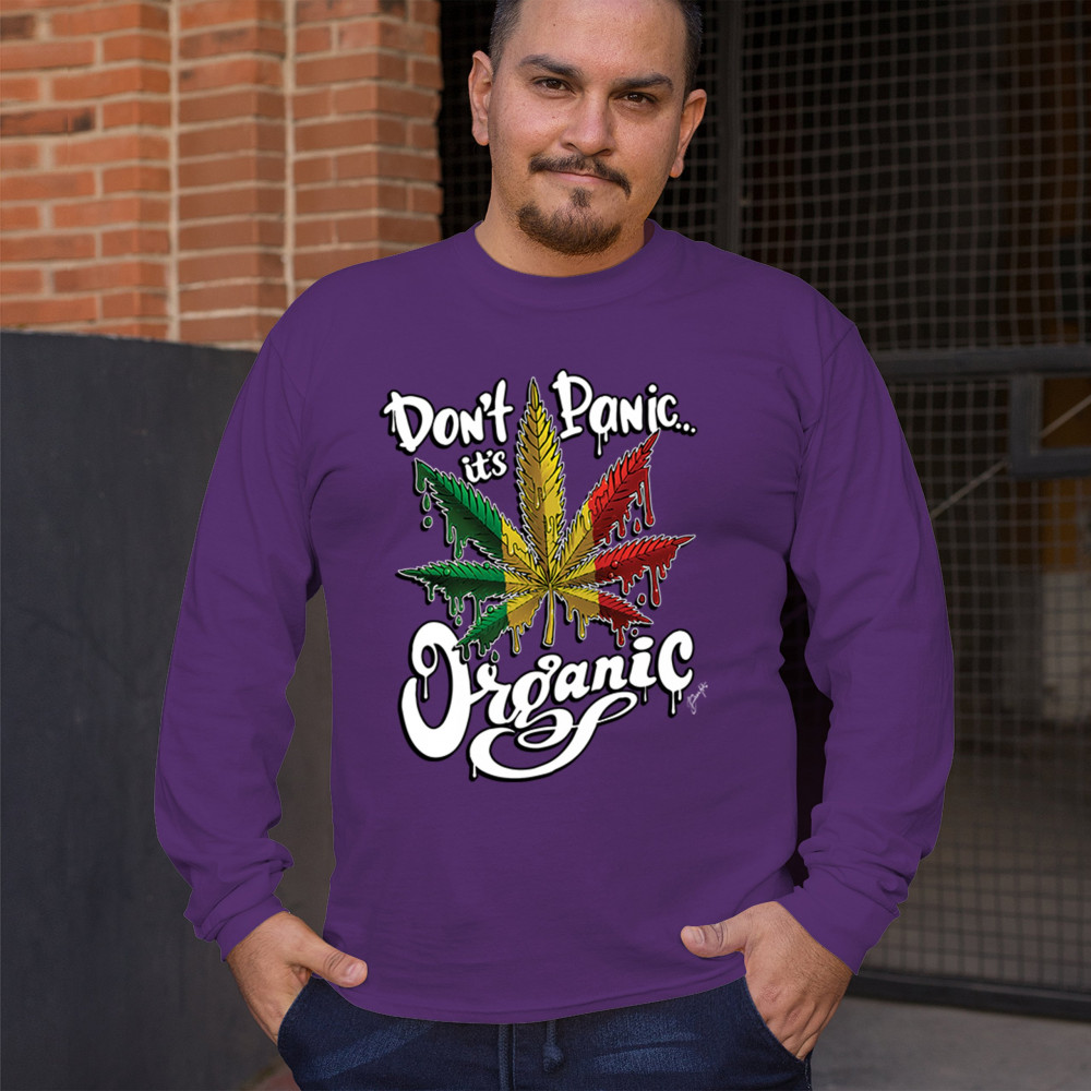 Stay cool and collected with our "Don't Panic...It's Organic" tee. Perfect for those who love life au naturel. It's more than a shirt—it's a lifestyle!