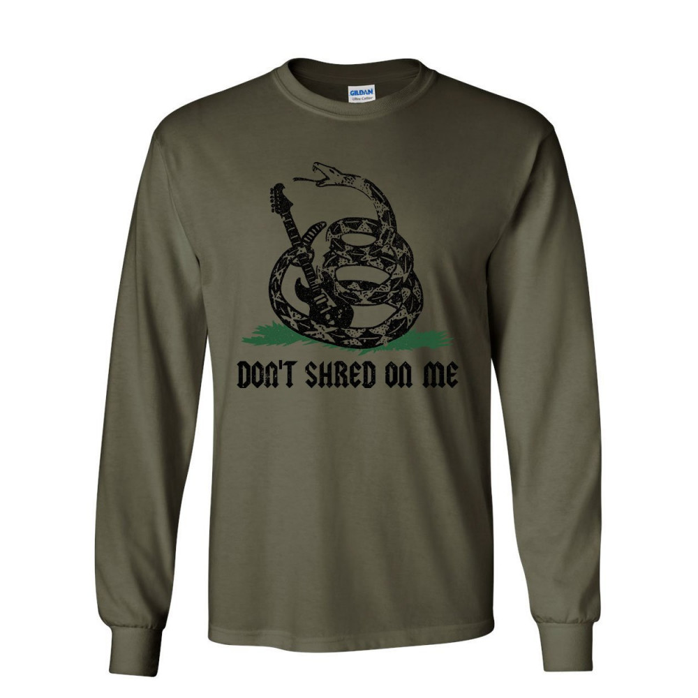 DON'T SHRED ON ME long sleeve t-shirt gadsden flag snake guitar rock music tee military green