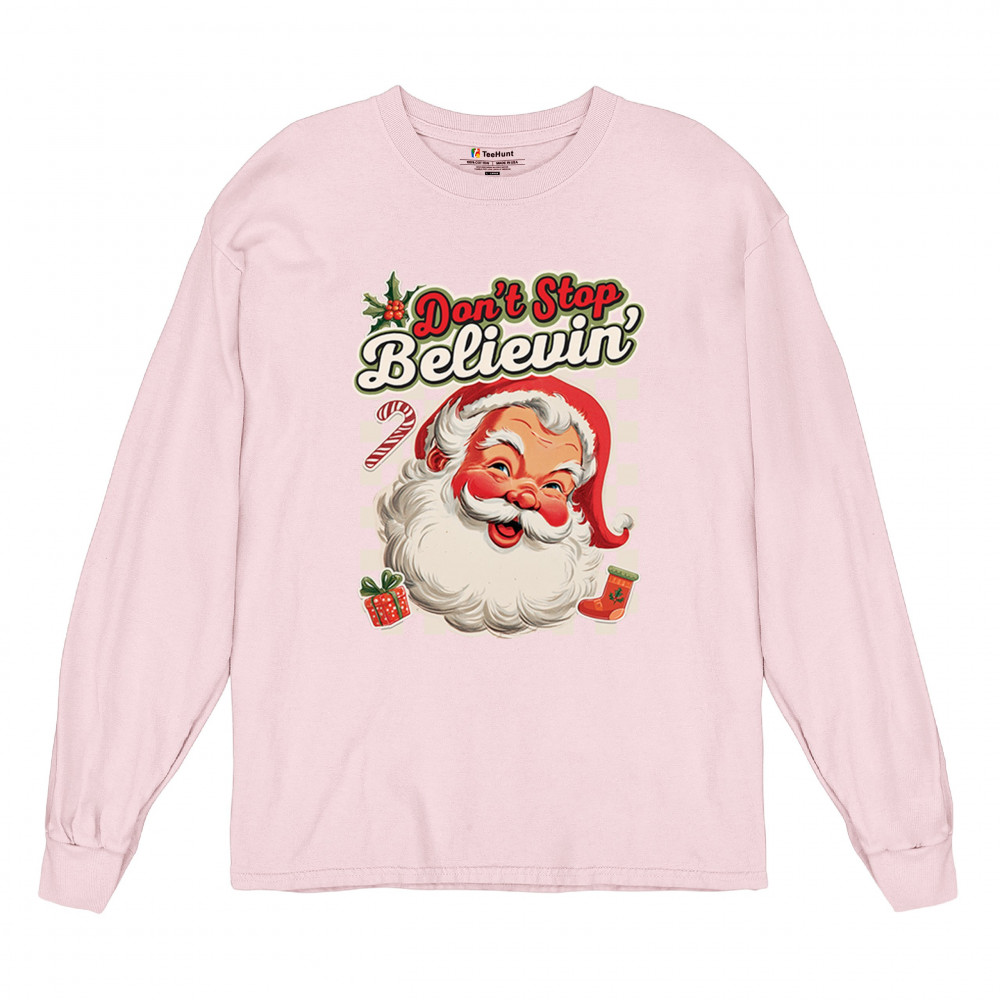 Spread holiday cheer with this “Don’t Stop Believing†Santa Claus shirt that blends classic Christmas spirit with cozy winter charm. Perfect for festive parties, family gatherings, or relaxing by the fire, this design captures Jingle Bells joy, Merry Xmas fun, Santa Claus magic, Reindeer delight, Rudolph glow, Snowman charm, and Christmas tree style for the perfect seasonal outfit.