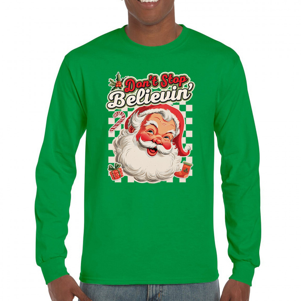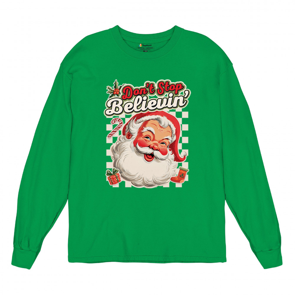 Spread holiday cheer with this “Don’t Stop Believing†Santa Claus shirt that blends classic Christmas spirit with cozy winter charm. Perfect for festive parties, family gatherings, or relaxing by the fire, this design captures Jingle Bells joy, Merry Xmas fun, Santa Claus magic, Reindeer delight, Rudolph glow, Snowman charm, and Christmas tree style for the perfect seasonal outfit.