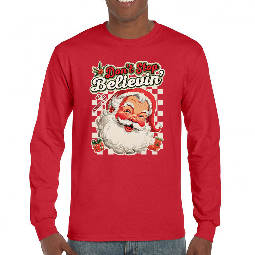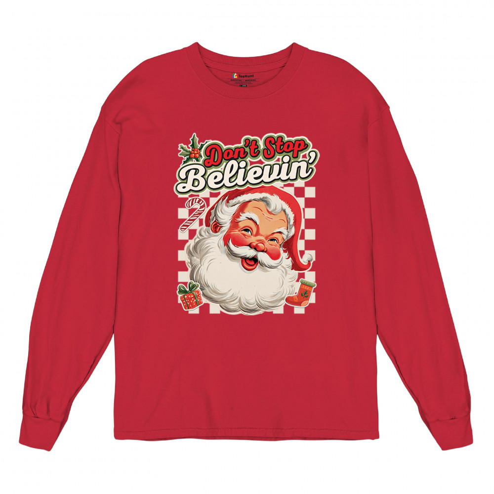 Spread holiday cheer with this “Don’t Stop Believing†Santa Claus shirt that blends classic Christmas spirit with cozy winter charm. Perfect for festive parties, family gatherings, or relaxing by the fire, this design captures Jingle Bells joy, Merry Xmas fun, Santa Claus magic, Reindeer delight, Rudolph glow, Snowman charm, and Christmas tree style for the perfect seasonal outfit.