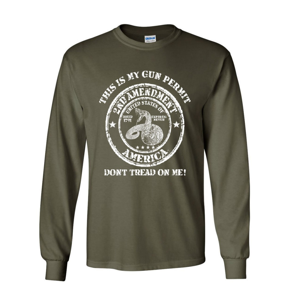 DON'T TREAD ON ME MY GUN PERMIT don't tread on me long sleeve t-shirt 2nd amendment gun permit gun rights 2a tee military green