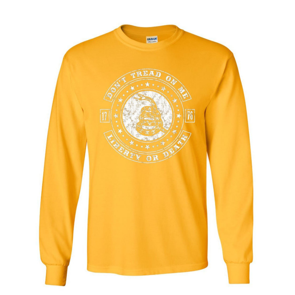 DON'T TREAD ON ME LIBERTY OR DEATH don't tread on me long sleeve t-shirt liberty or death gadsden rattlesnake tee yellow