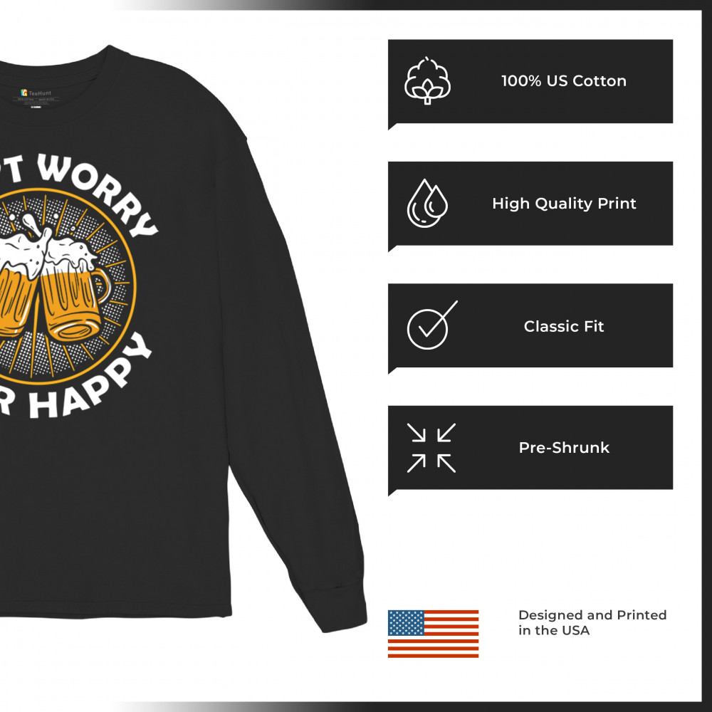 Spread joy with the "Don't Worry, Beer Happy" design, perfect for beer lovers. Ideal for casual outings and social gatherings.