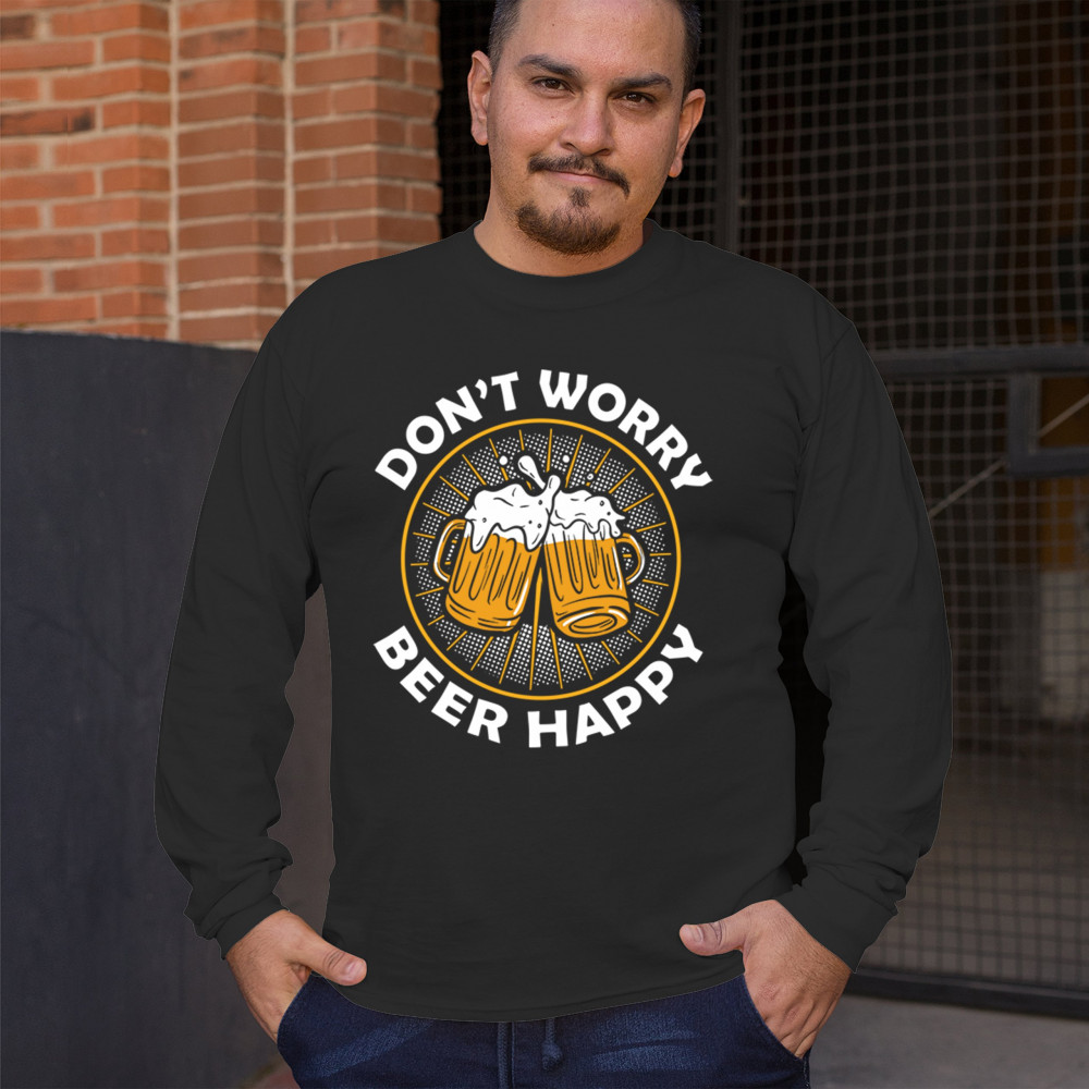 Spread joy and positivity with our "Don't Worry, Beer Happy" design. Perfect for beer enthusiasts and those who enjoy a carefree attitude, this design is ideal for casual outings, beer festivals, and social gatherings. It's a fantastic way to bring a smile to everyone's face and share a laugh over a cold brew. This playful design also makes an excellent gift for friends and family who appreciate beer-themed humor. Add this cheerful design to your collection and let the good times roll!