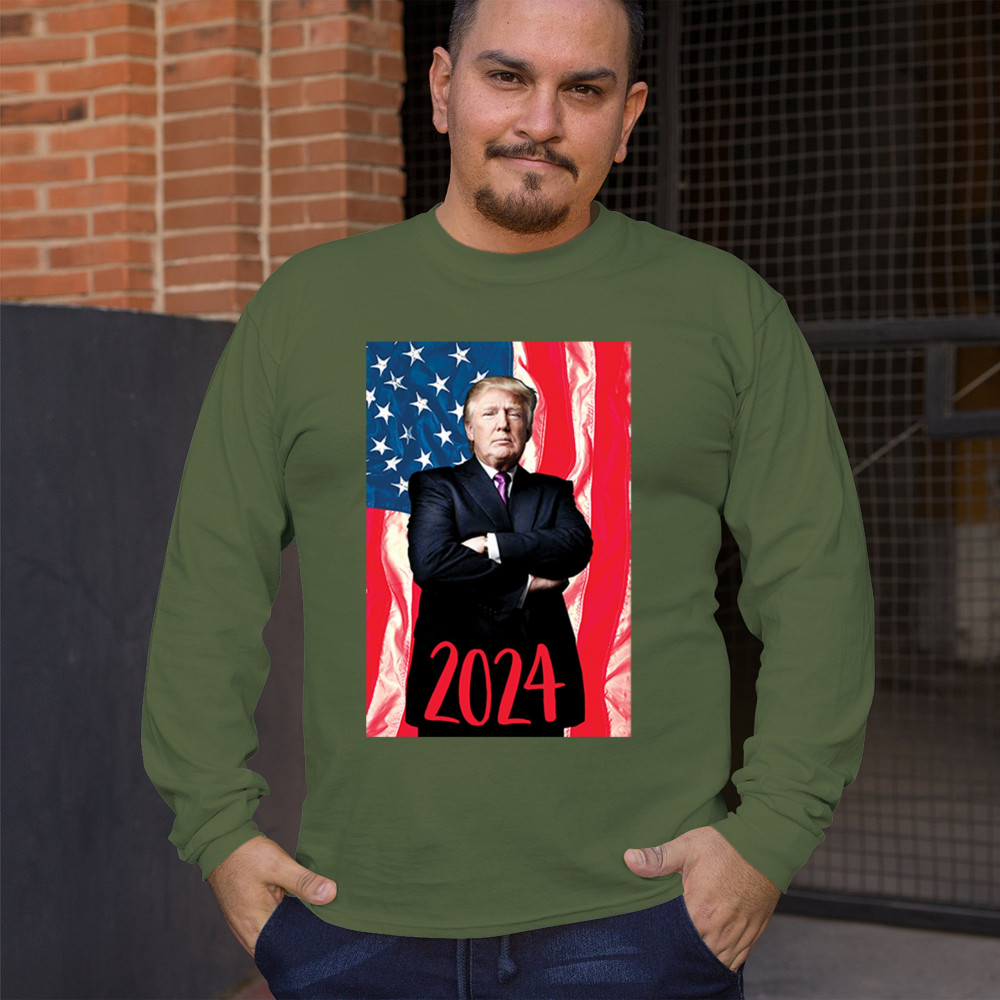 Stand proud with our Donald Trump 2024 design, a bold statement for America's future. Perfect for patriots and conservatives who champion victory, trust, and unity. Join the movement.