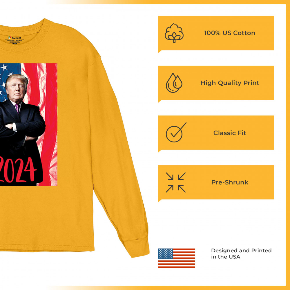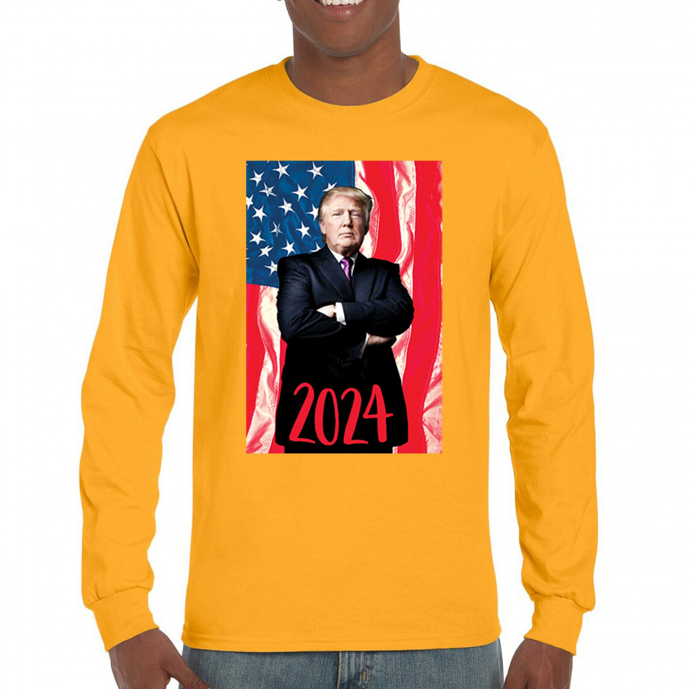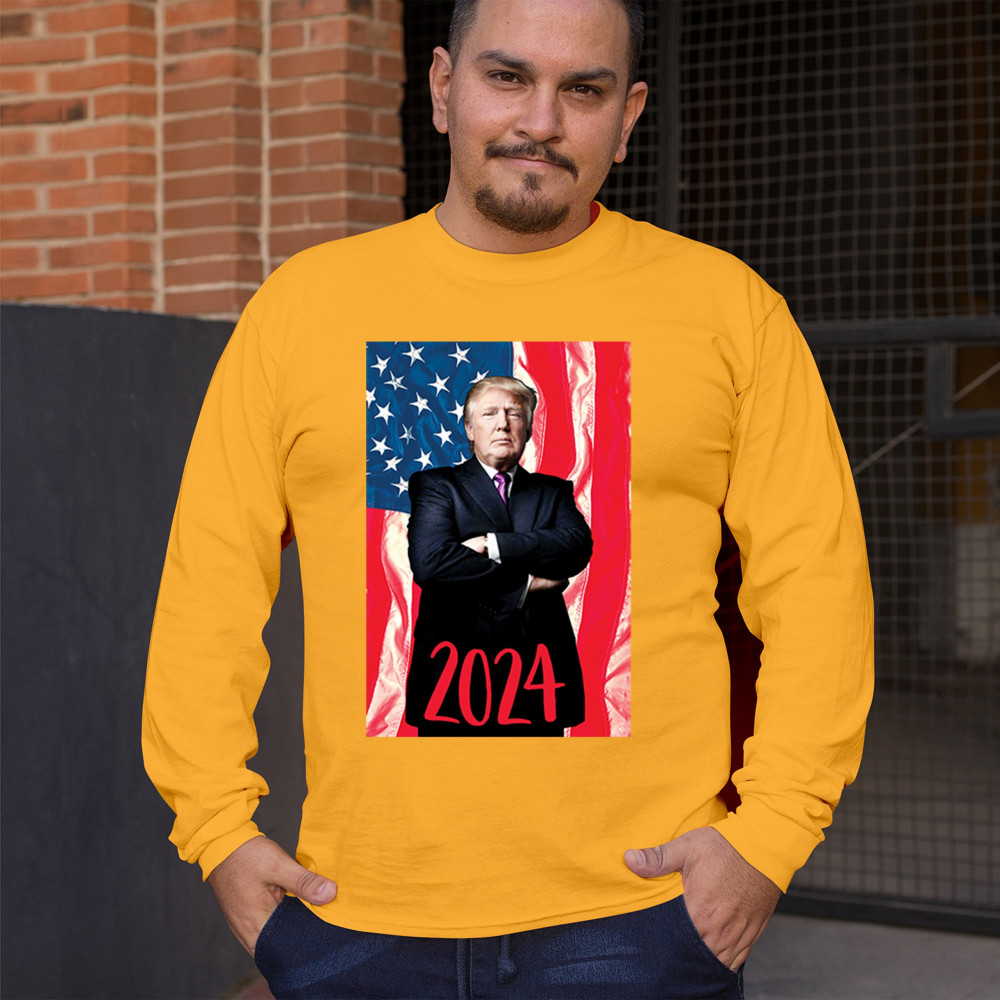 Stand proud with our Donald Trump 2024 design, a bold statement for America's future. Perfect for patriots and conservatives who champion victory, trust, and unity. Join the movement.