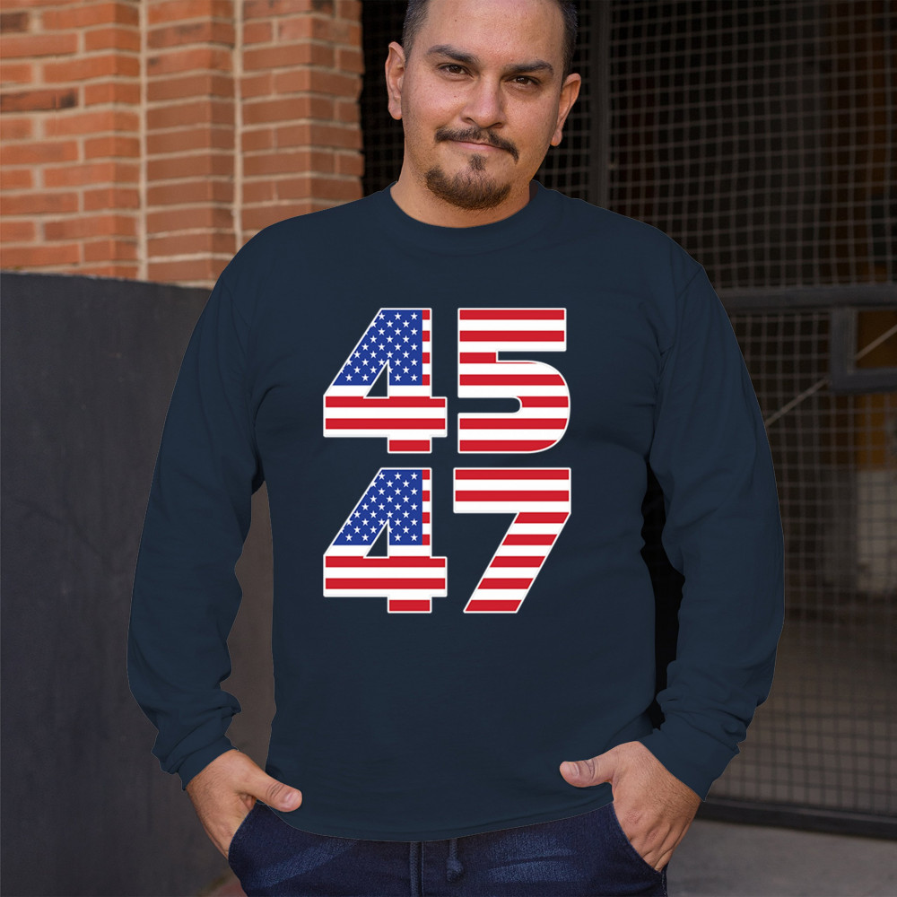 Show your support for the Trump presidency with our '45-47' design. Perfect for conservatives and Trump supporters, it symbolizes victory and unwavering loyalty. Join the rebelution and declare your allegiance.